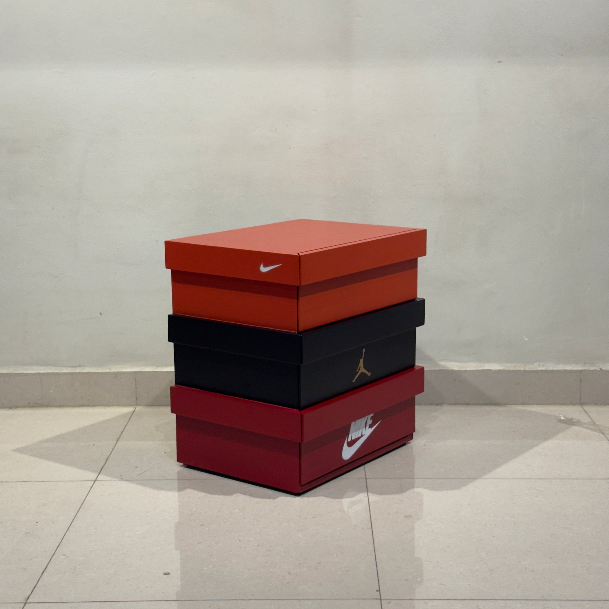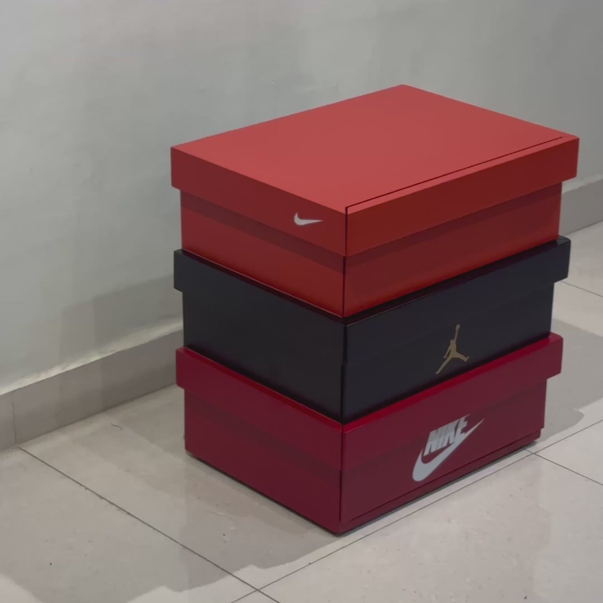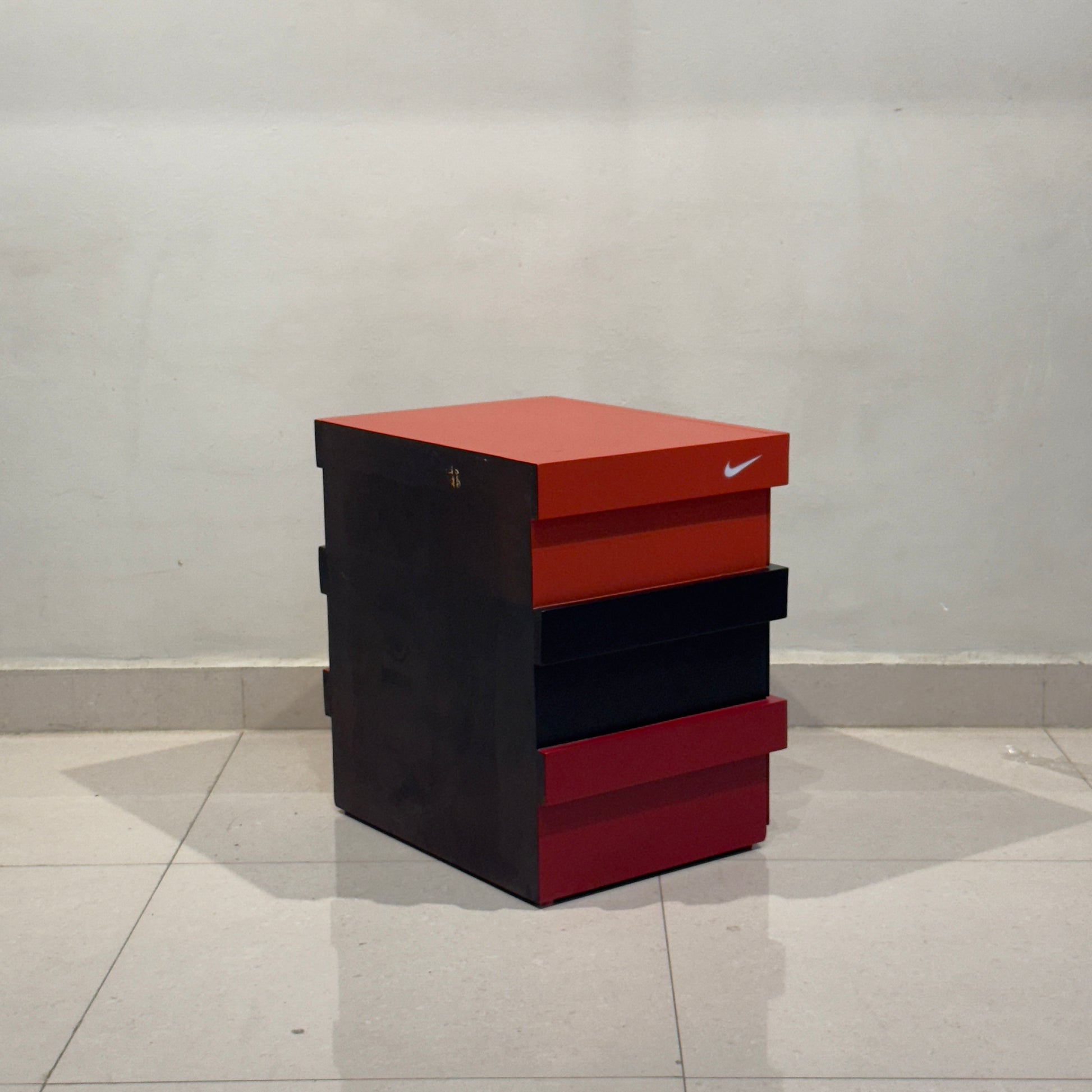 Multifunctional cabinet crafted from premium wood and inspired by stacked shoeboxes. Whether used as a bedside table, storage crate, or shoe rack, its unique look and soft-close drawers make it a standout addition to any modern space.